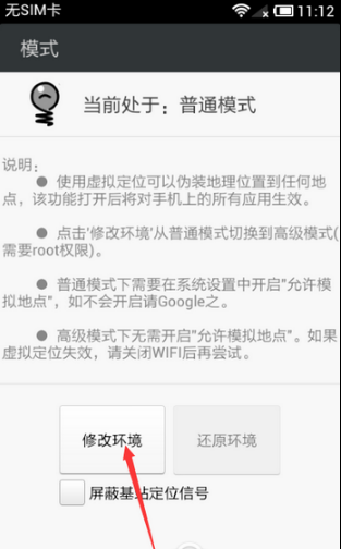 如需解锁更深层权限,点击“修改环境”即可切换至高级模式,该模式下系统行为更贴近原生定位逻辑,兼容性进一步提升。