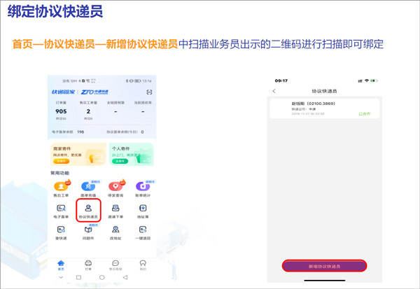 扫描协议快递员提供的专属二维码,即可快速完成绑定,后续订单自动匹配指定人员上门服务。