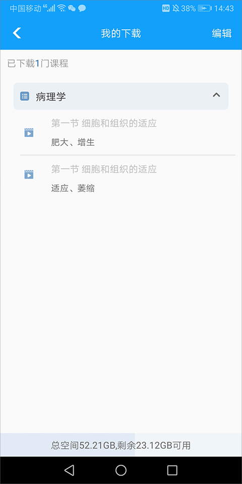注意:视频文件不会出现在我→下载管理中,该入口仅显示电子书及相关增值附件。