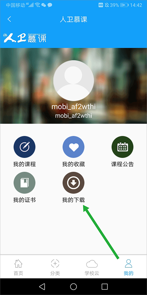 通过人卫慕课观看并下载的课程视频,需进入慕课首页,点击底部导航栏我的,再选择我的下载进入专属视频存储区。