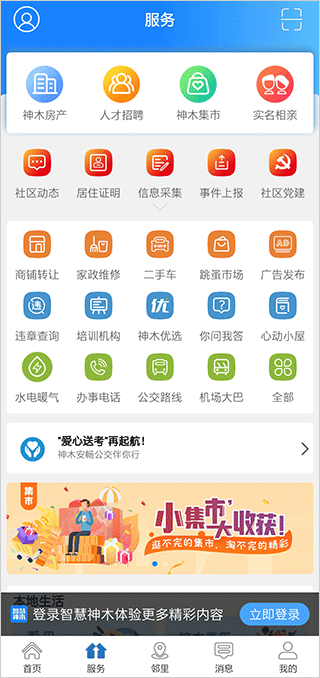 整合了资讯,社交,旅游,购物,学习,工作,医疗,出行等内容,全方位为神木地区居民们带来便利。