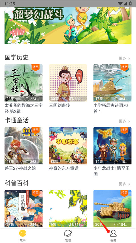 进入主界面后,在消息或内容中心选择一篇适合孩子阅读的文章。