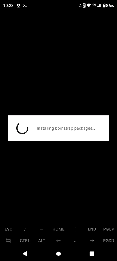 首次启动Termux时,系统会自动执行“Installingbootstrappackages”(安装引导程序包)过程,请耐心等待完成。