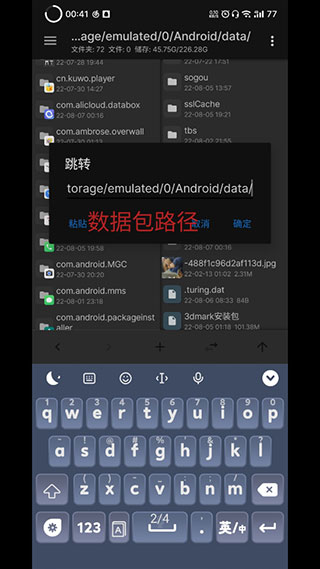 将配套数据包解压至路径/storage/emulated/0/Android/data/下,并重命名为com.futuremark.dmandroid.application,通常仅包含常用测试项目如WildLife。
