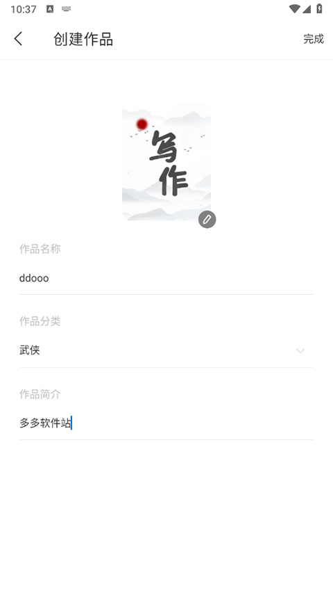 填写作品名称、类型及简介等基本信息后,便可正式进入写作界面。