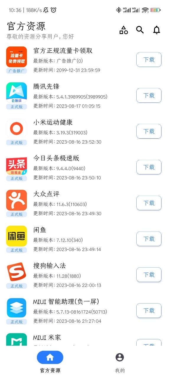 除了查找各类应用资源,用户还能直接通过平台完成应用更新,并支持资源的上传与分享。