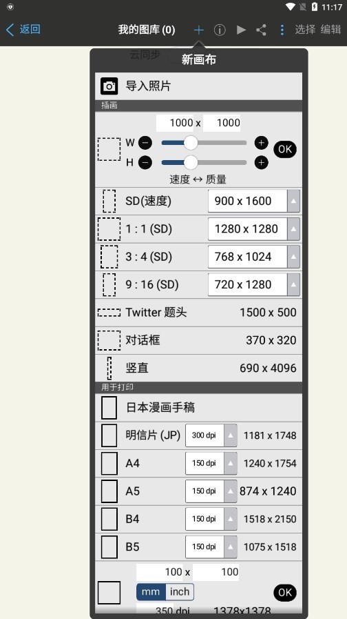 打开软件后进入“我的图库”,新建画布并进入绘画界面。