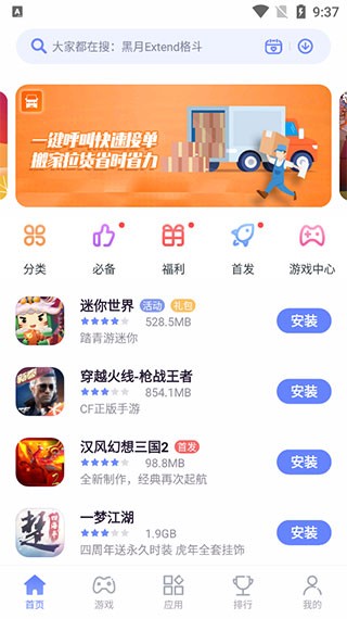 进入主界面后,可看到当前热门的游戏或应用列表,便于快速发现新内容。