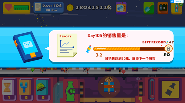 每日达成销售目标后,系统会开放新城市地图,带来更丰富的地域挑战和顾客类型