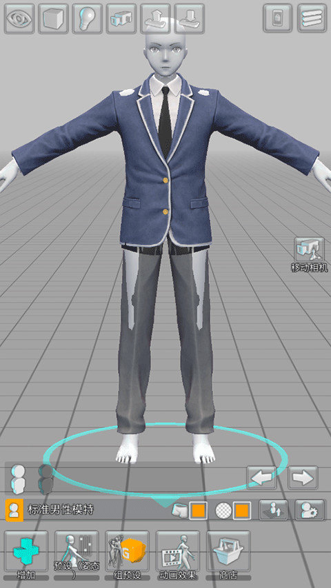 通过底部齿轮图标进入模型编辑界面,切换至灰度模式可临时隐藏运动服图层,方便观察底层结构或叠加新服饰层次。