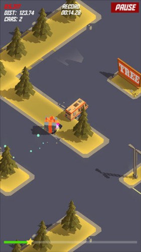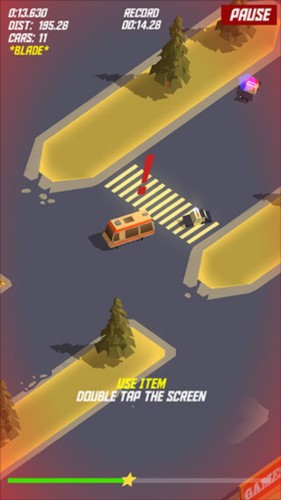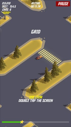 双击屏幕即可激活当前道具:爆破弹在车尾腾起火云,冻结射线让追兵瞬间僵直,巨化形态下车身暴涨,碾碎护栏如纸糊,蜂群无人机自动锁定后方目标发起连环突袭,而铁球则随车身摆动横扫侧翼威胁,燃油补给则悄然延长你的逃亡续航。