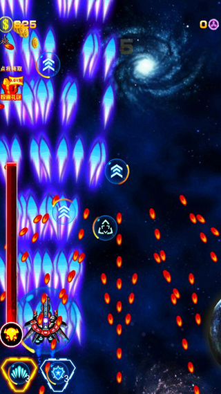 左下角“高能爆弹”按钮可瞬发全域清屏攻击,清除当前屏幕全部敌弹并触发短暂无敌帧。