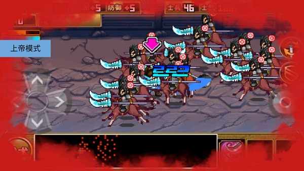 骑兵交锋优先以己方步兵顶住,主角绕后突袭弓手与步卒,快速削减敌方士气。士气归零后敌军溃逃,追击效率倍增。遇敌隐身地图边缘,依小地图定位后近身强攻即可解决。