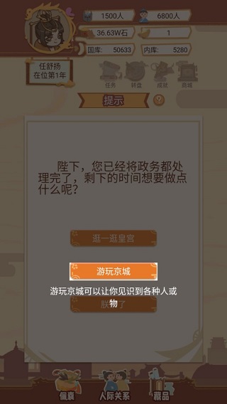 政务告一段落后点击“我处理完了”,便步入属于皇帝的闲暇时光;