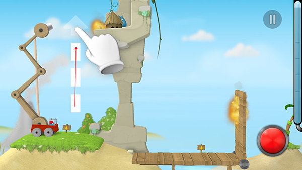 手指向上滑动调节喷射高度,让水流越过障碍直击火心。