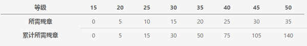 武学修炼按等级分段推进,每提升五级进入新阶段,需消耗对应数量的残章方可解锁后续升级。不同武学所需残章数量各有差异,具体数值参见图示说明。