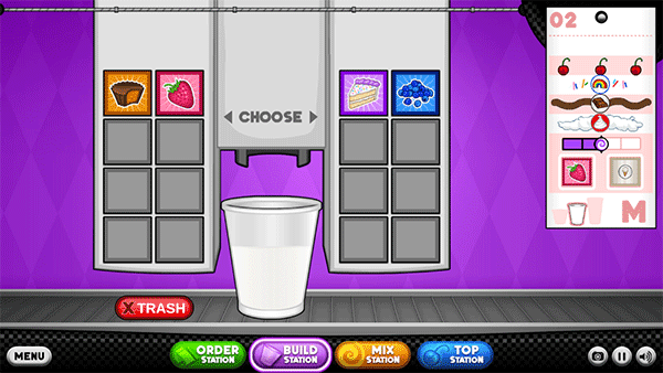 右侧菜单标明原料顺序,糖浆打底,糖果铺层,浇头收尾,点击即放,节奏由你掌控。