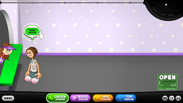 第一位客人已经站在柜台前,点击“take order”接下首单。
