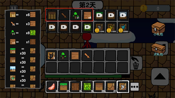 界面顶部显示当前可制作的道具列表,底部为随身背包,实时呈现所携物品。