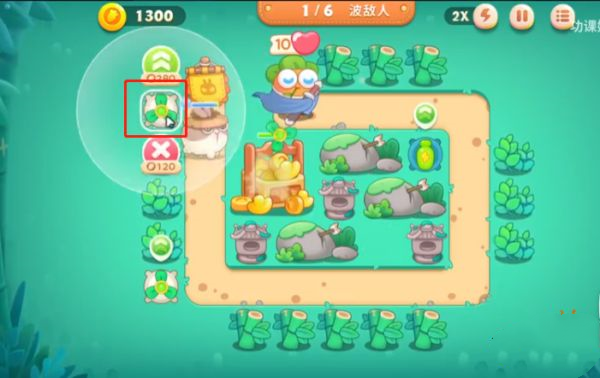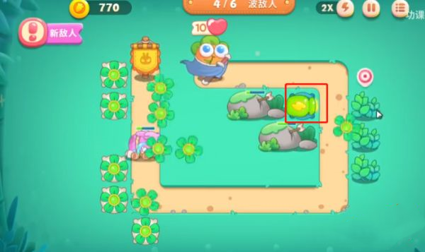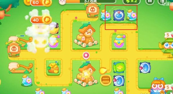 进入关卡后,在红框标注位置放置一座分裂炮台,兼顾打怪与拆建筑双重作用。