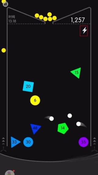 右上角的闪电图标可瞬间提升球速,适合应对密集障碍或需要快速清理残局的情况。