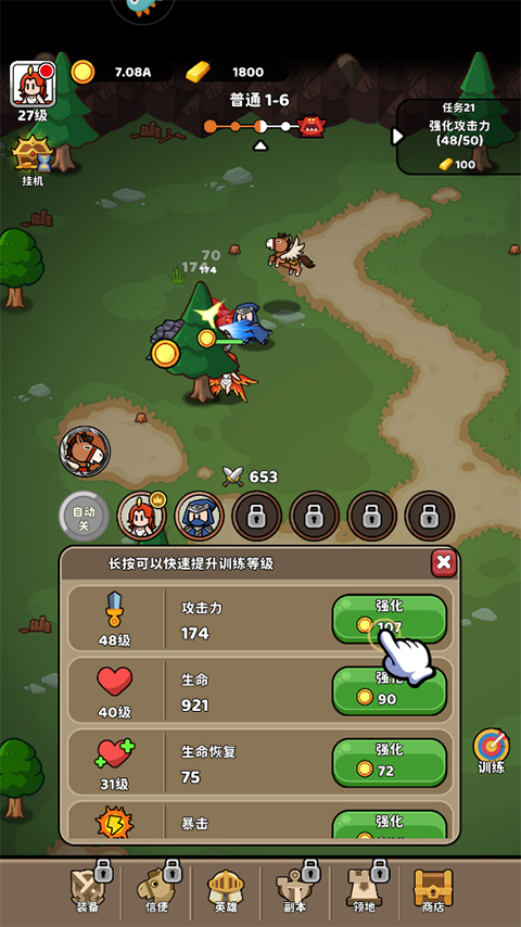 积累的金币可用于提升角色各项属性,增强整体实力。