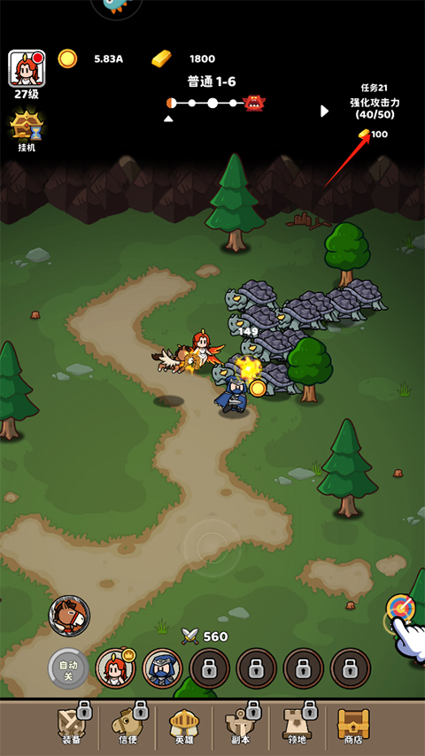 进入游戏后角色可自动攻击周围敌人,轻松击败怪物即可获取大量金币。