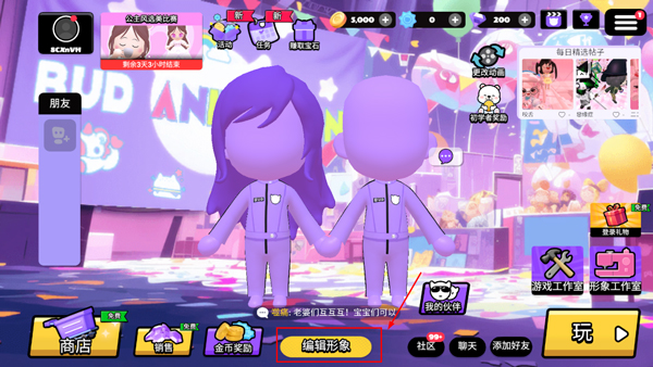 打开BUD来到游戏首页,点击下方编辑形象选项。