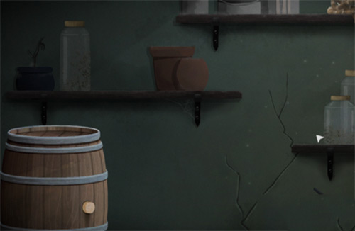 点击住宅内的门,向上拖拽进入下方的地下室场景。