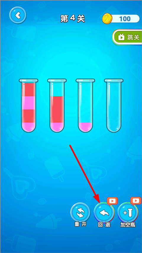 若操作失误,无需焦虑,点击下方回退按钮即可撤销上一步,也可选择重开按钮从头开始当前关卡。