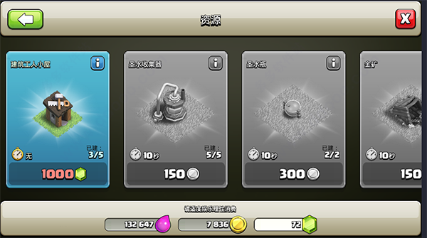 建筑工人小屋雇佣工人同步施工,宝石可加速建造进程。