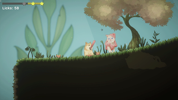 游戏中的地面分为草地和泥土地两种,而主角只肯舔干净的草地,对泥土地避之不及。
