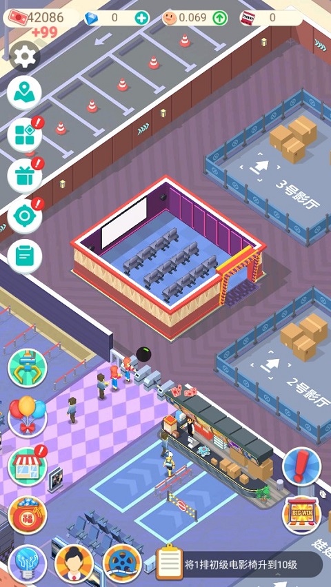 游戏采用2.5D视角,带来更开阔的视觉体验,便于随时掌握顾客反馈并针对性优化各功能区,从而提升影院人气与口碑。