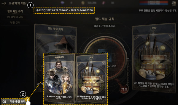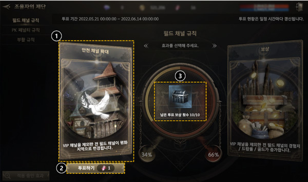 可以通过触摸城镇中心的石像或整个菜单中的[调整者的祭坛]进行投票。
