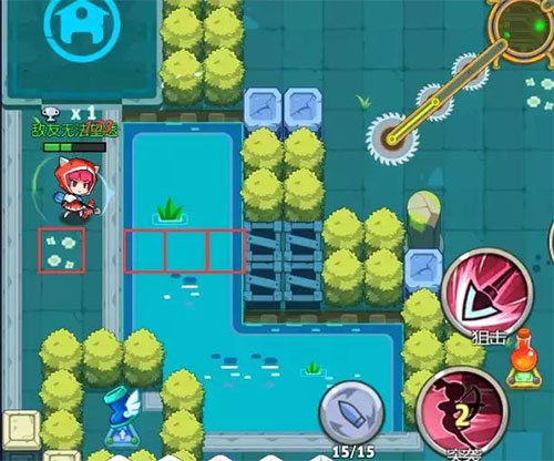 2技能原本会在射出的过程中被墙体裆下,但如果从某些自上而下的角度发射,则可越过墙体射出,利用这个特性可以很好的一边利用墙体保护自己,一边进行输出。(例如2技能配图中的情况)