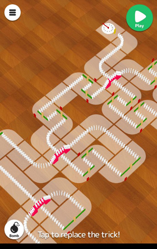 进入关卡后,用手指在屏幕上连续滑动即可绘制引导路径。完成绘制后点击“Play”按钮,系统会自动搭建起初始的机械框架。此时你可以逐个更换路径中的器械组件,调整其类型或位置,以实现更理想的连锁效果。