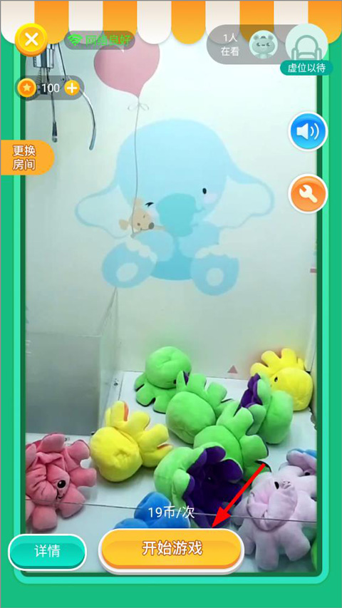 进入指定娃娃机房间后,可自由切换不同机型,查看当前机器内娃娃详情,确认后点击“开始游戏”。