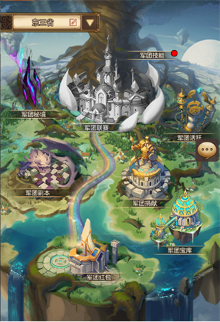 角色等级达到18级后开放军团功能,玩家可加入现有军团或消耗钻石创建自己的军团。军团内设有副本、秘境、联赛等多种协作玩法,参与即可获取专属奖励。