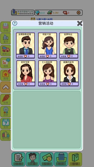 模拟经营地产大亨是一款融合图文表现的模拟经营类手游,由嗨皮工作室自主研发。游戏以现代审美为基调,打破传统纯文字模拟的局限,带来更具沉浸感的地产创业体验。玩家将化身主角“小王同志”,在获得父亲提供的1000万启动资金后,踏上地产开发之路。目标不仅是打造优质楼盘,更要通过精明的投资、合理的人事安排、科学的地皮选择与高效的营销策略,逐步回购父亲所持股份,最终实现对家族企业的全面掌控。游戏真实还原了房地产开发中的核心环节,让玩家在虚拟世界中体验从零起步到成为地产巨头的全过程。