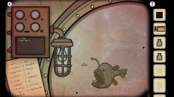 先在窗户中看到鮟鱇鱼,依照莫尔斯电码表向其发送“up”和“left”指令,获得密码“ink”。