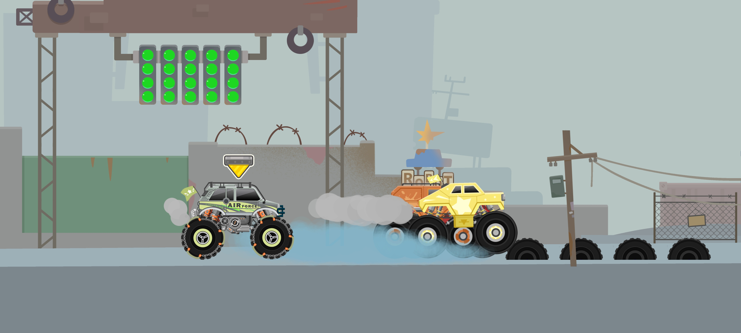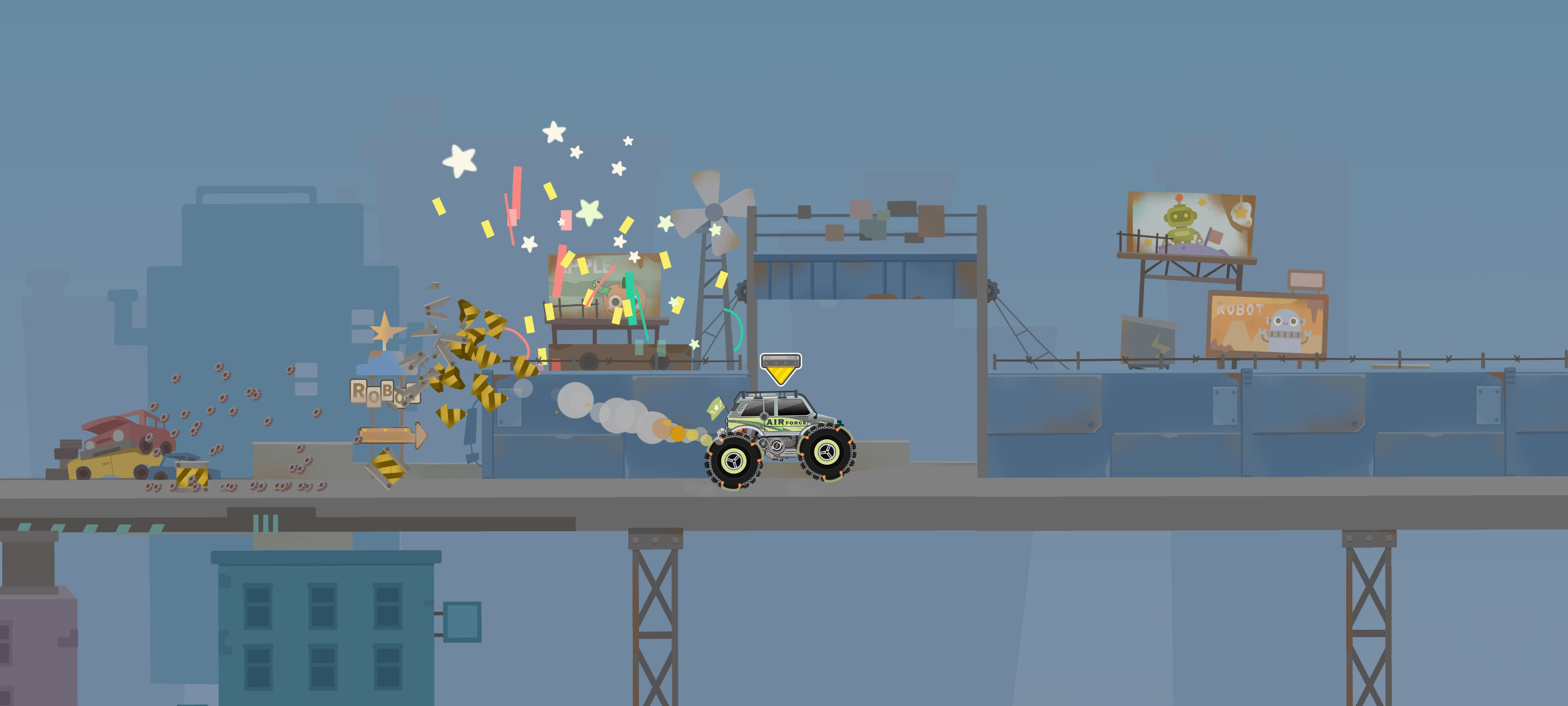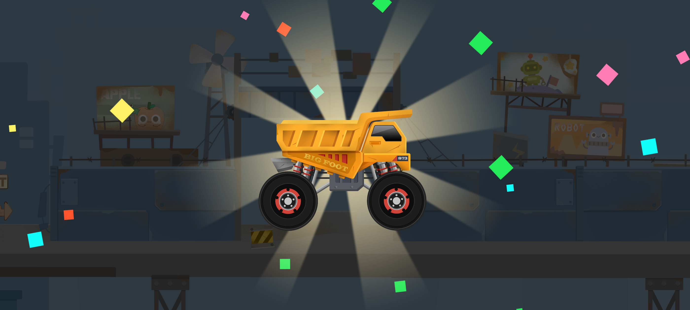 玩家需操控大脚车穿越精心布置的障碍与弯道,尽快抵达终点完成关卡。
