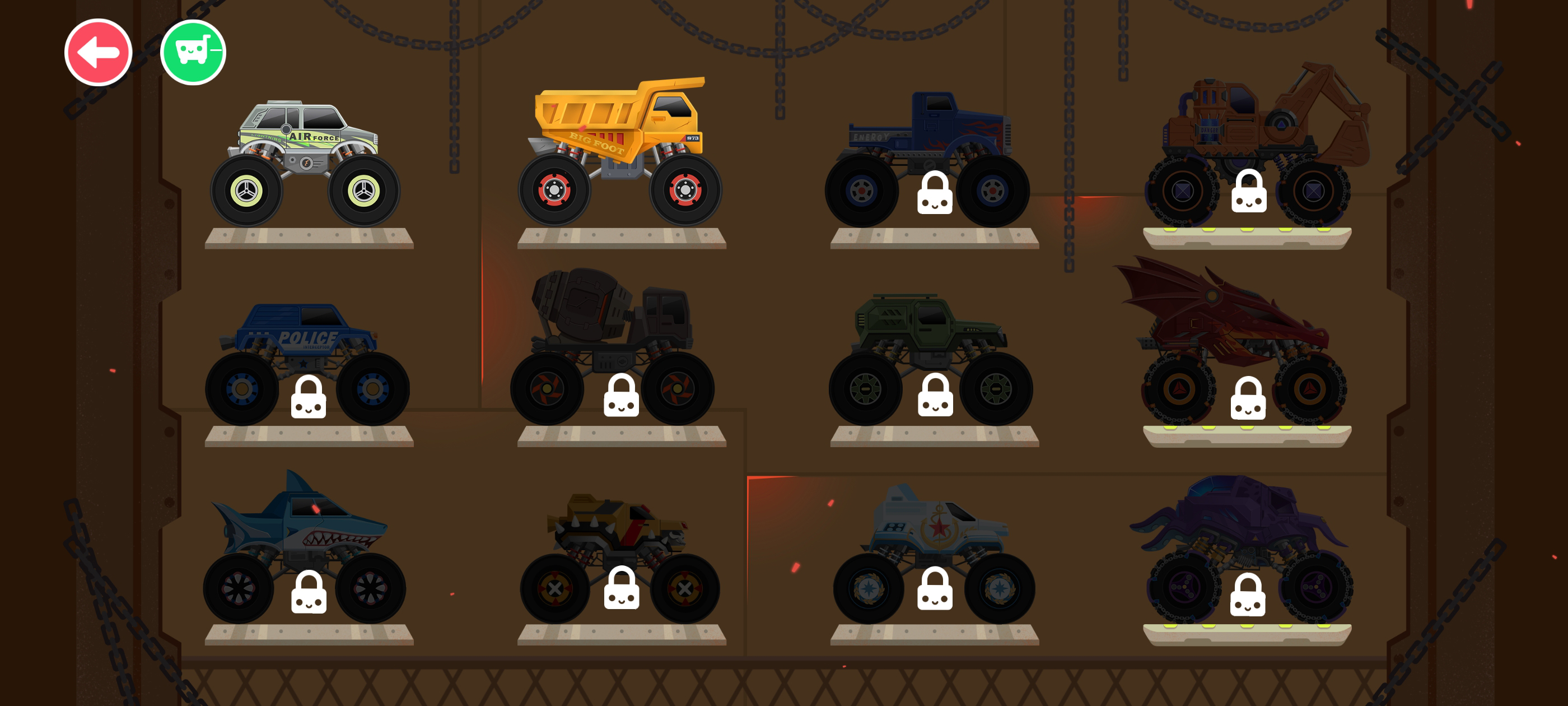 大脚车总动员2是由 Yateland 开发的一款面向2至8岁儿童的赛车竞速类手游。玩家将驾驶造型夸张、性能强劲的大脚车,在多样化的赛道上展开刺激又趣味十足的竞速挑战。游戏提供超过12款风格各异的大脚车供选择,搭配十余种主题地图,涵盖雪地、沙漠、城市街道、火山地带、美国西部荒野乃至宇宙空间站等丰富场景。操作方式直观简单,通过触屏与设备倾斜即可轻松掌控车辆,让小玩家快速融入竞速乐趣。