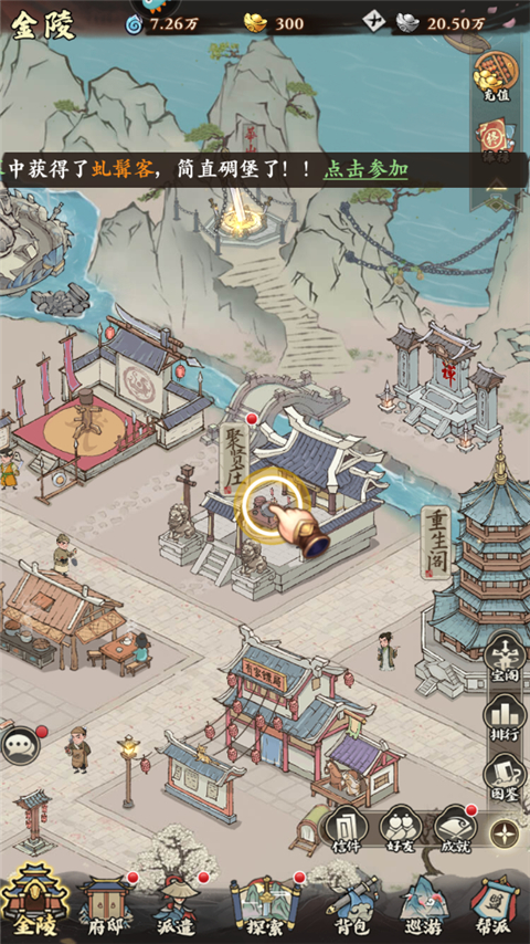 自创武林是一款融合武侠题材与放置玩法的RPG冒险手游,采用卡通动漫风格呈现,搭配轻快背景音乐与丰富多样的场景设计,营造出别具一格的江湖体验。玩家将化身初入江湖的武林人士,通过推进主线剧情积累资源,招募各路豪杰、收集神兵利器与绝世功法,组建专属队伍,灵活搭配技能与装备,在一次次激战中击败强敌,逐步踏上武林之巅。游戏内还设有探索、府邸、炼丹、巡游、帮派等多元玩法,支持自由探索广阔地图,最终突破凡尘桎梏,飞升登顶至尊之位。