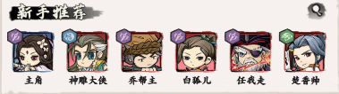 主角 + 神雕大侠 + 乔帮主 + 白狐儿 + 任我走 + 楚香帅