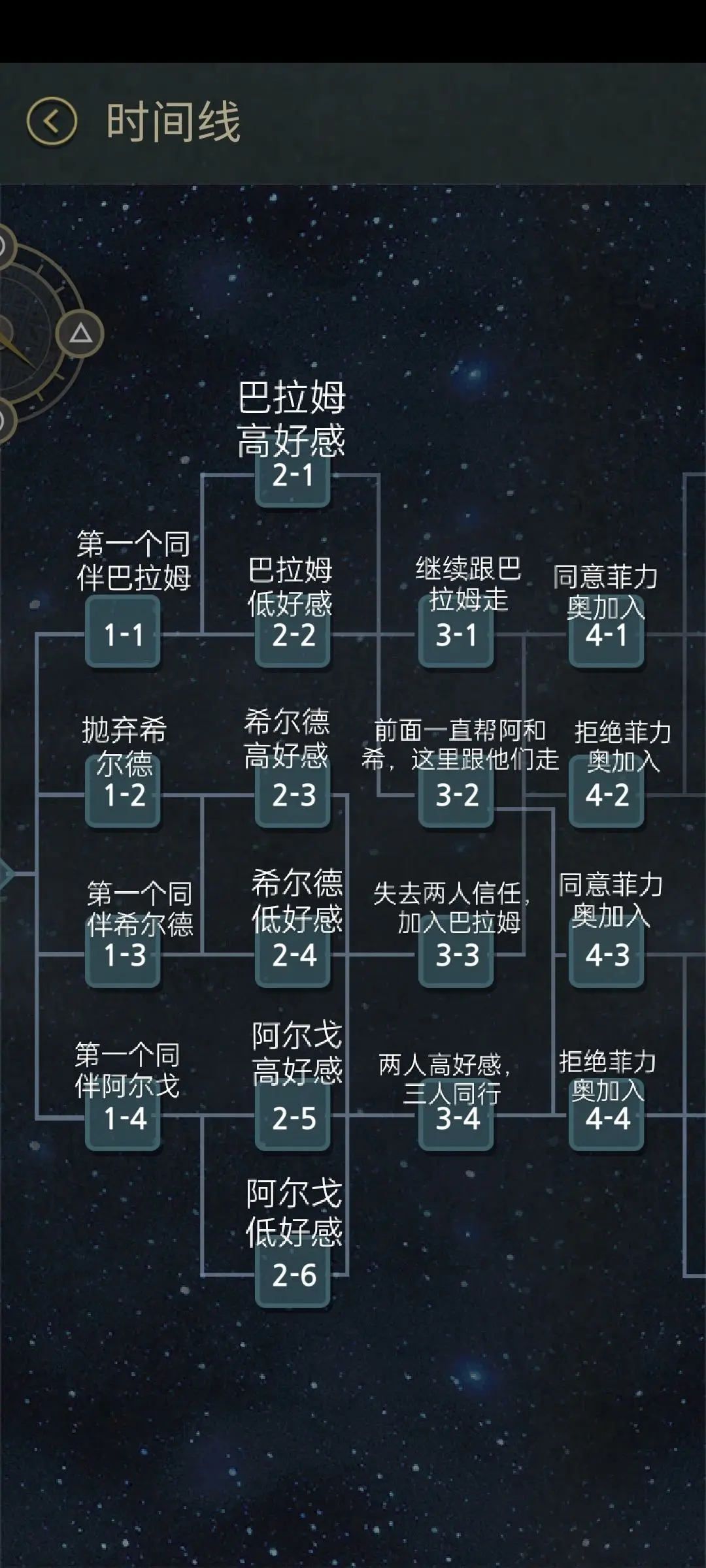与阿尔戈和希尔德建立深厚好感,最终朝菲力奥开枪。若先遇见巴拉姆,途中帮助阿尔戈与希尔德,无论是否同行,结局前都会触发关键对话,随后做出最终选择。