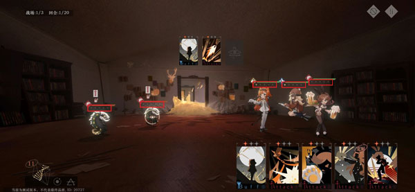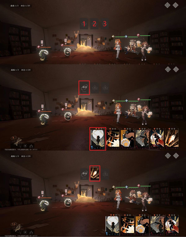 进入战斗界面后,每回合行动次数由场上人数决定。图中我方三人,即可行动三次,每次操作消耗一点行动点。