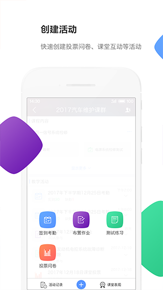 教学活动涵盖教师发起的各类互动任务及学生的参与记录,例如签到、随堂练习、问卷调查和在线测试等。