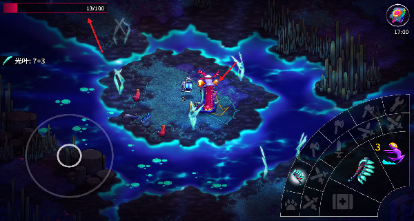 2、游戏中通过左侧的摇杆来控制人物进行移动。