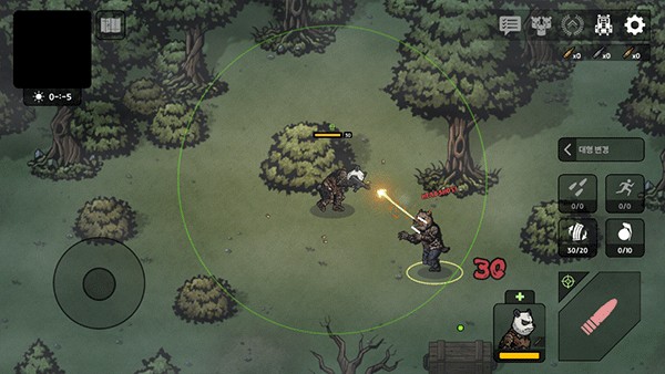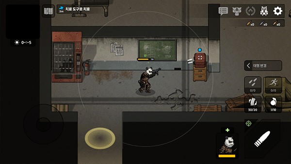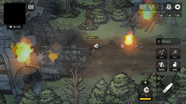 操控角色展开冒险:左侧虚拟摇杆控制移动,右侧按钮负责射击、拾取等交互操作;