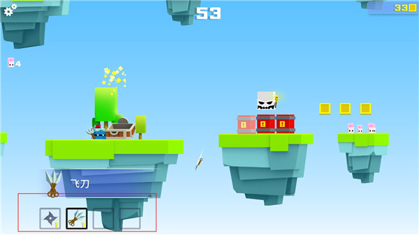 拾取的宝箱内容会显示在屏幕下方四个格子中,作为当前可用武器;